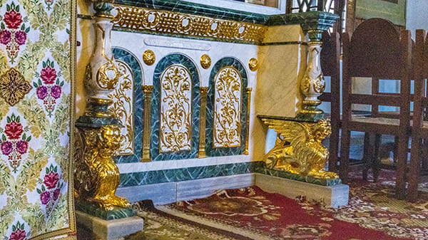 Ensuite, l’iconostase sépare le sanctuaire de la nef. Cette structure sculptée constitue un élément central orthodoxe. Ainsi, chaque détail reflète un savoir-faire exceptionnel.
